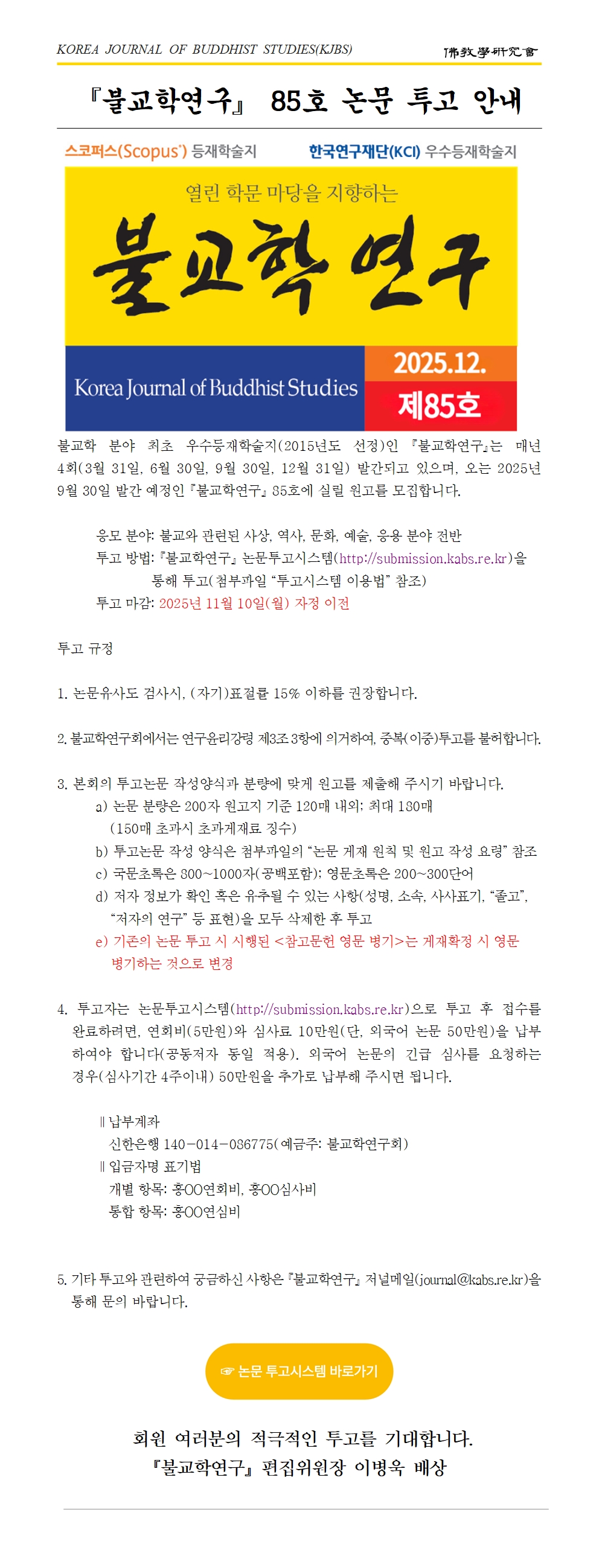 [논문투고 안내]『불교학연구』제85호(12월 31일 발행분) 논문 투고 안내(11월 10일 월요일 마감)