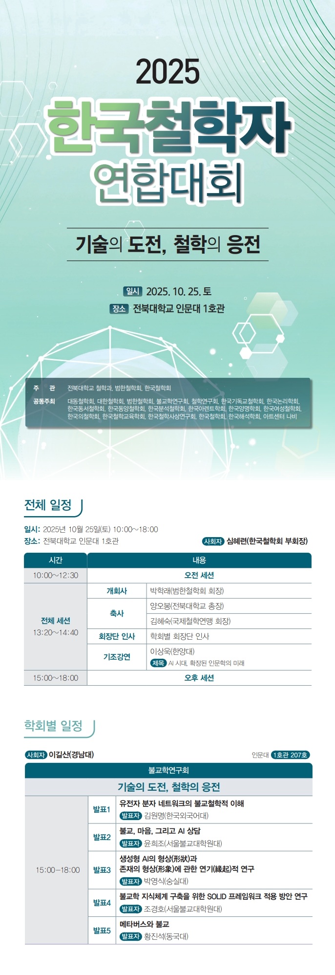 주제: 기술의 도전, 철학의 응전 불교학연구회는 다가오는 2025 한국철학자연합대회에서 단독 세션 발표회를 개최합니다.